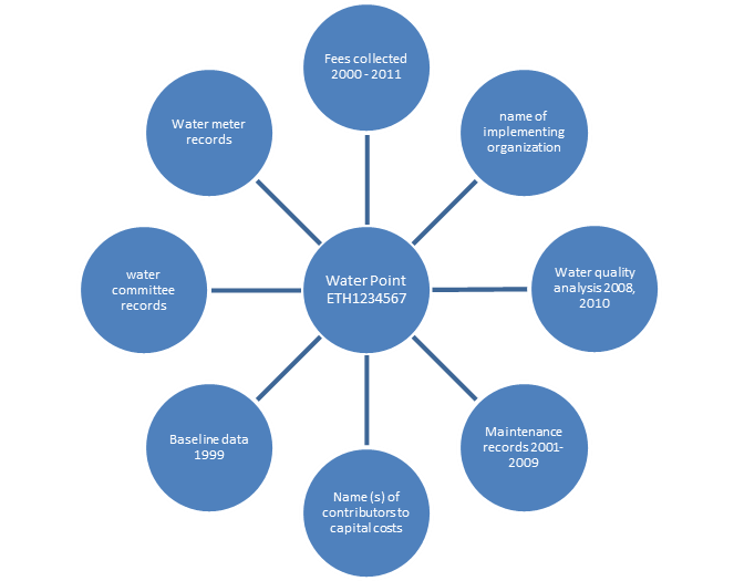 A rich database on water points would be a powerful and necessary tool to help governments, implementing organizations and customers fully understand and address challenges to sustainable services. Currently, monitoring data on water points are collected by different groups, with different goals and indicators, and saved in different place. Data collected over time, even in the same area, only leads to unconnected snapshots and can’t be easily compiled into one database for analysis. Thus, water data are highly fragmented. Water quality, functionality, access, fee, and other data are collected from water points by different groups: