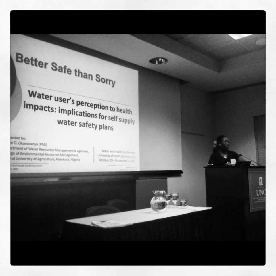 I was lucky enough to attend this year’s Water & Health Conference at the University of North Carolina. I was even luckier to make it as the skirts of Hurricane Sandy swept up the Atlantic coast before crashing into the American North East.