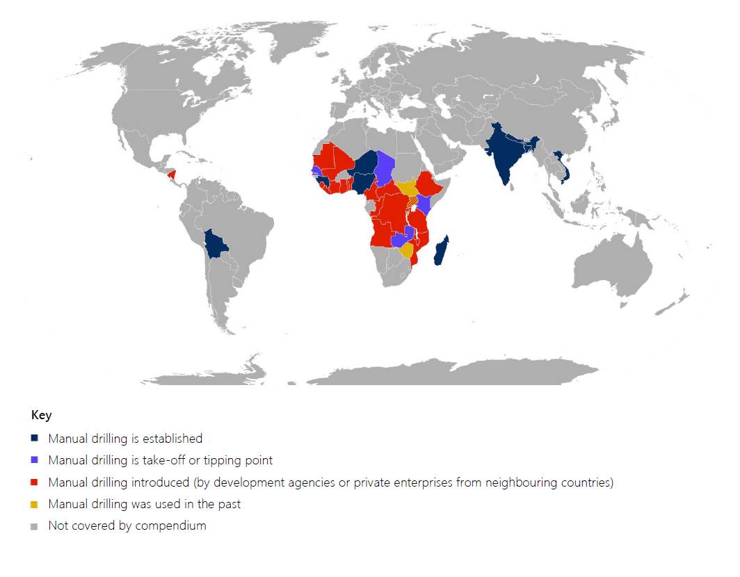 Today, manual drilling methods are being used to provide water for drinking and other domestic needs in at least 36 countries. In some places, manual drilling methods are well established. Millions of people in rural and urban areas use “tubewells” that were drilled manually in India and Bangladesh.