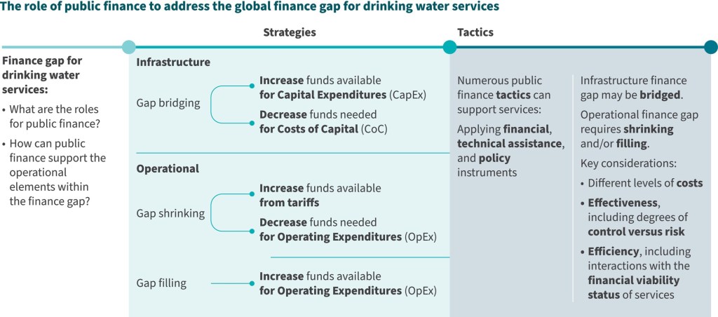 This framework could help to better understand and compare tactics for addressing the finance gap for drinking water services. To read more about this study, you can access the full article here: The Role of Public Finance to Address the Global Finance Gap for Drinking Water Services.