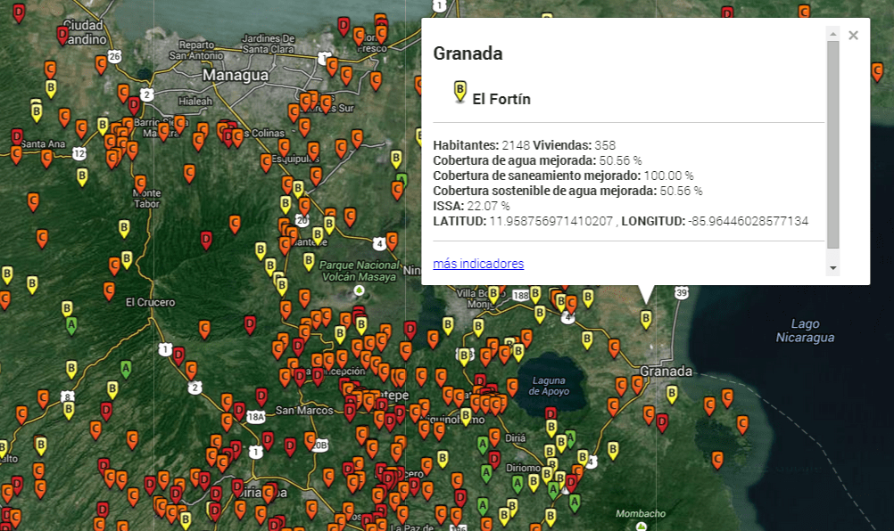 2. SIASAR information system. Each point represents a rural community and the colour defines the status of rural water services.
